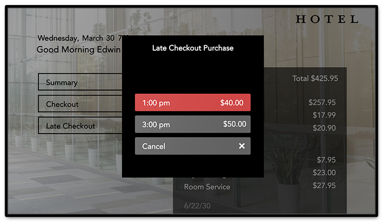 Advertise features & specials at TV turn-on & as guests scroll through the interactive programming guide