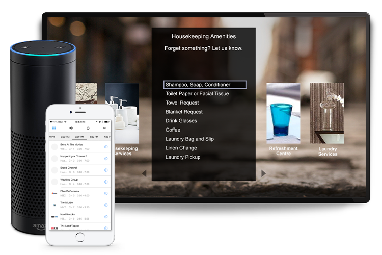 Allows guests to request services, find entertainment and get daily conveniences by simply talking to an in-room Amazon Alexa or Google Nest Hub