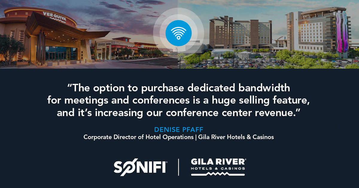 “Before SONIFI, we used to receive constant complaints from guests about Wi-Fi service, especially in our 10-story tower where the network struggled to keep up,” said Denise Pfaff, Gila River’s Corporate Director of Hotel Operations.