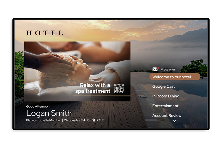 Customizable interactive features allow guests to use the TV to learn about on-site dining options, explore spa services, and take advantage of late checkout offers.